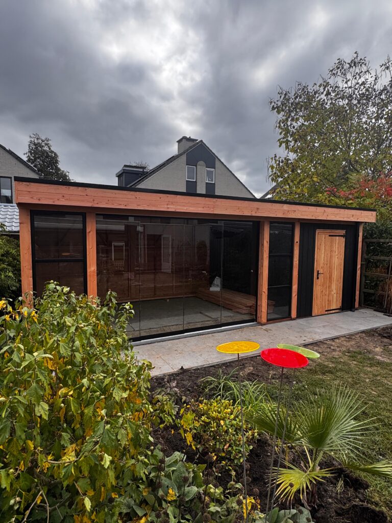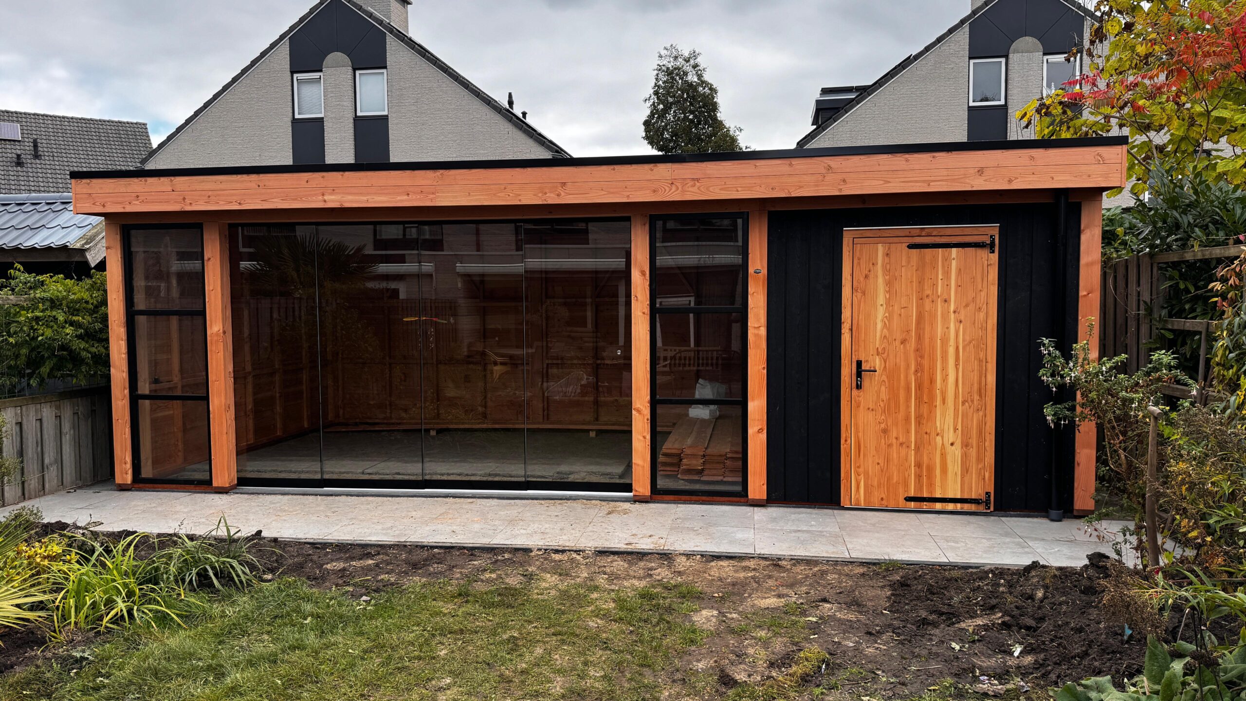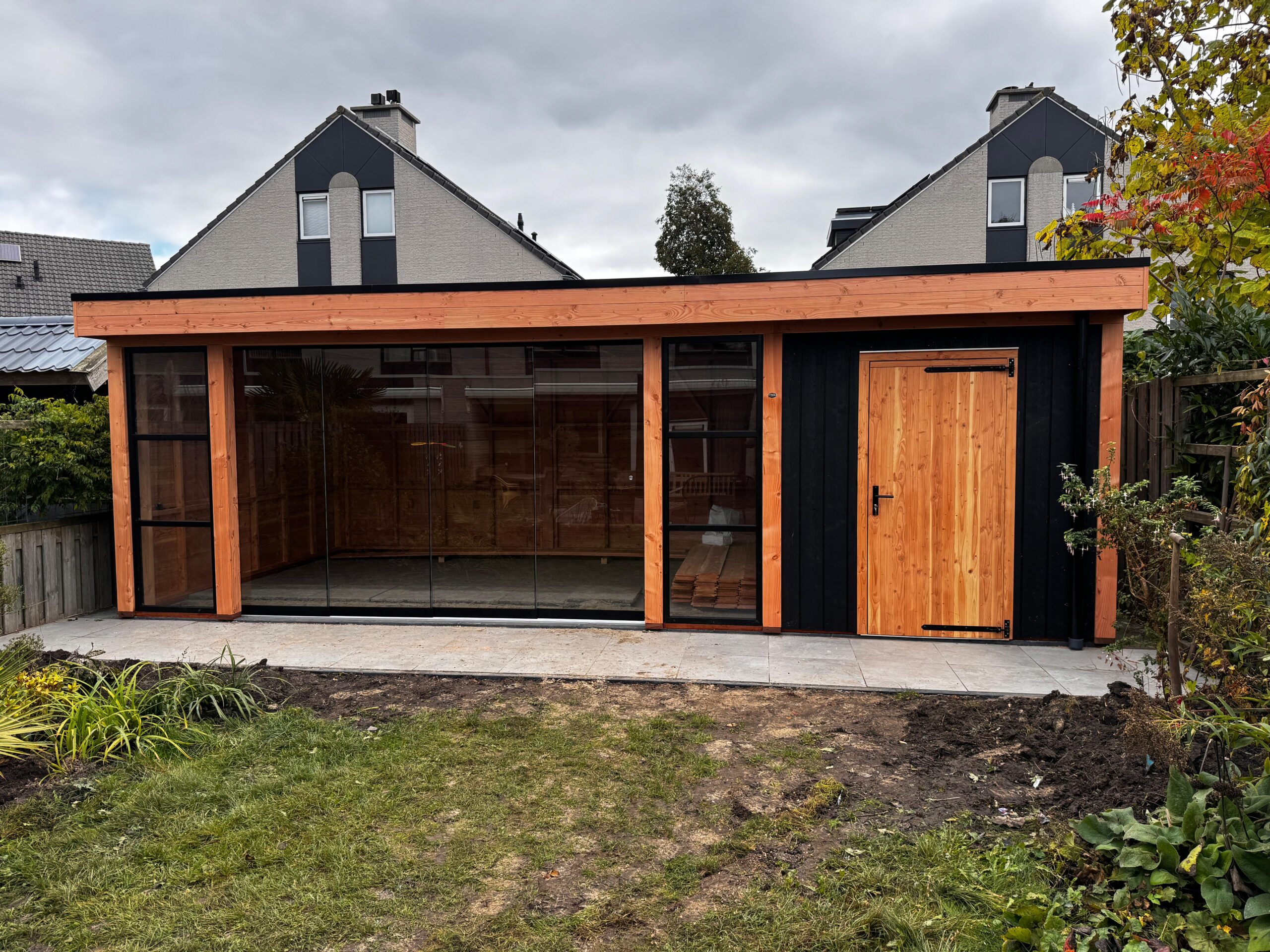 -Voorzijde bekleed met zwarte sponningdelen 18x175mm, verticaal aangebracht
