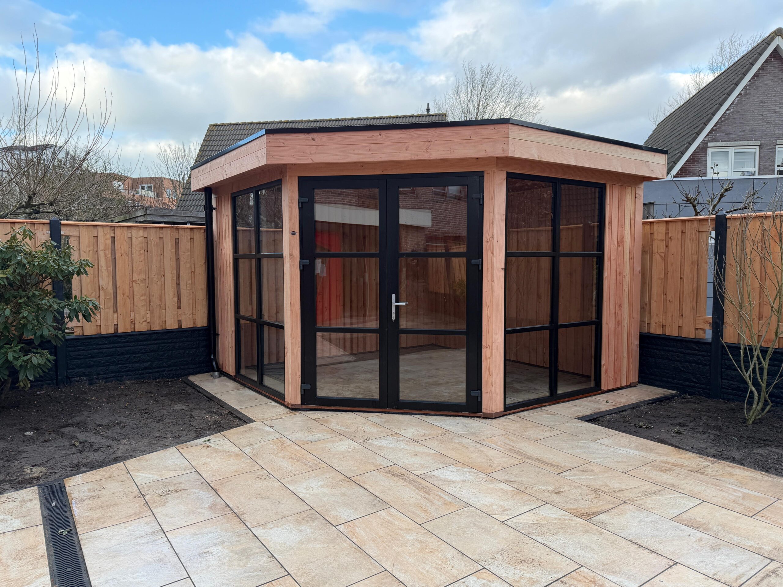 -Buitenzijde achterwanden bekleed met geïmpregneerde rabatdelen