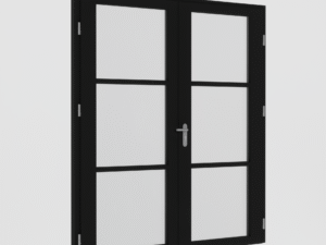 -1 vuren gelamineerde dubbele deur, half glas (kozijnmaat ca. 195x175cm)