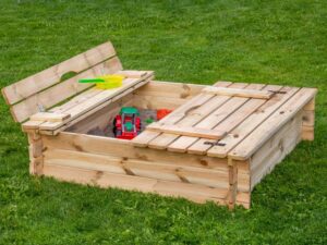 Met deksel/zitbank. Houtdikte 18 mm. De hoekstukken zijn zwart geïmpregneerd. Douglashout valt in duurzaamheidsklasse 3 en is daarmee één van de duurzaamste houtsoorten in Europa. 120 x 120 x 30 cm Onze zandbakken voldoen aan de CE-norm. WAARSCHUWING: Alleen geschikt voor particulier gebruik. Alleen geschikt voor gebruik buitenshuis. Alleen geschikt voor kinderen van 3 tot 14 jaar, onder toezicht van volwassenen. Maximaal gewicht per gebruiker: 50 kg. Te plaatsen op een vlakke ondergrond en bij voorkeur op een schaduwplek.