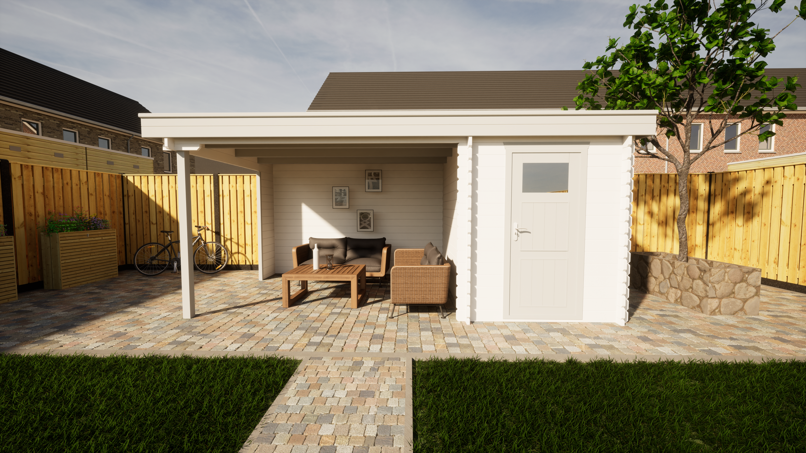 * Indien u een ”vuren vloer op hardhouten liggers” besteld in de webshop, geldt dit alleen voor in de blokhut!! dus niet in het veranda gedeelte