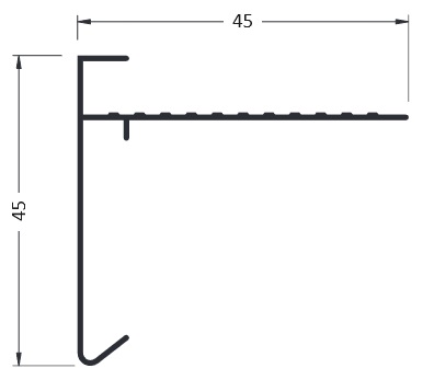 Aluminium daktrim 45x45mm, lengte 250cm incl. 1 koppelstuk
