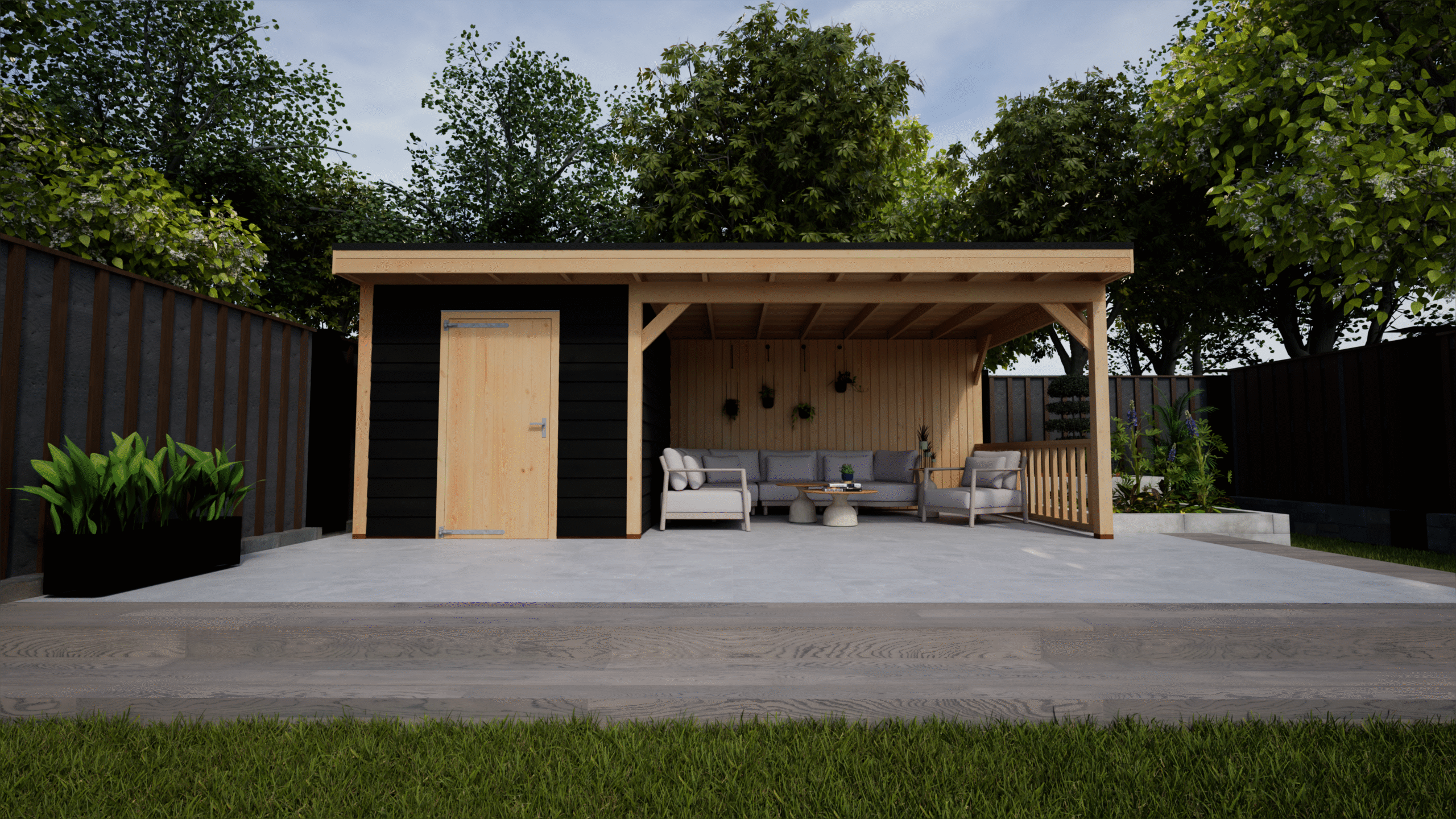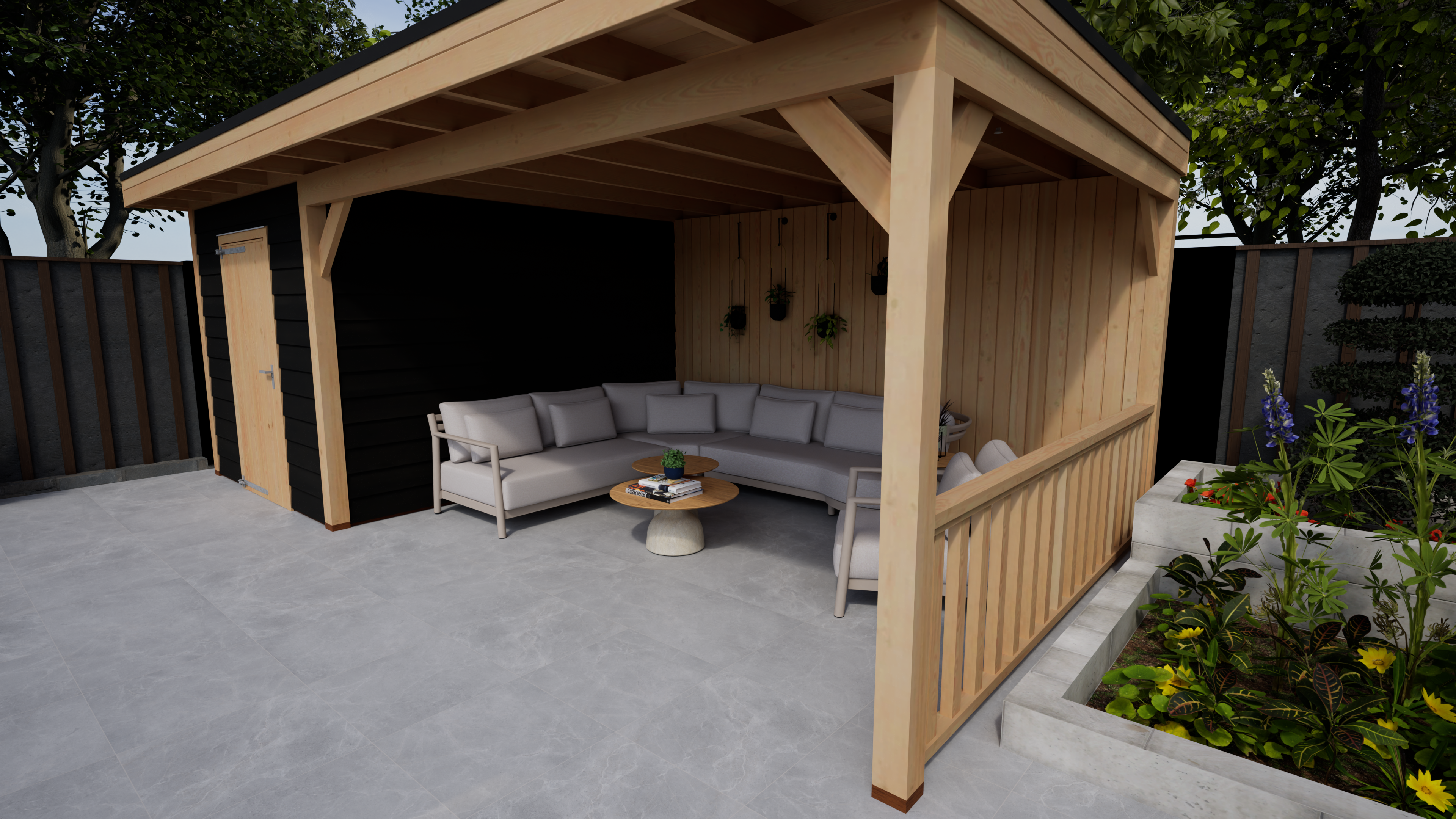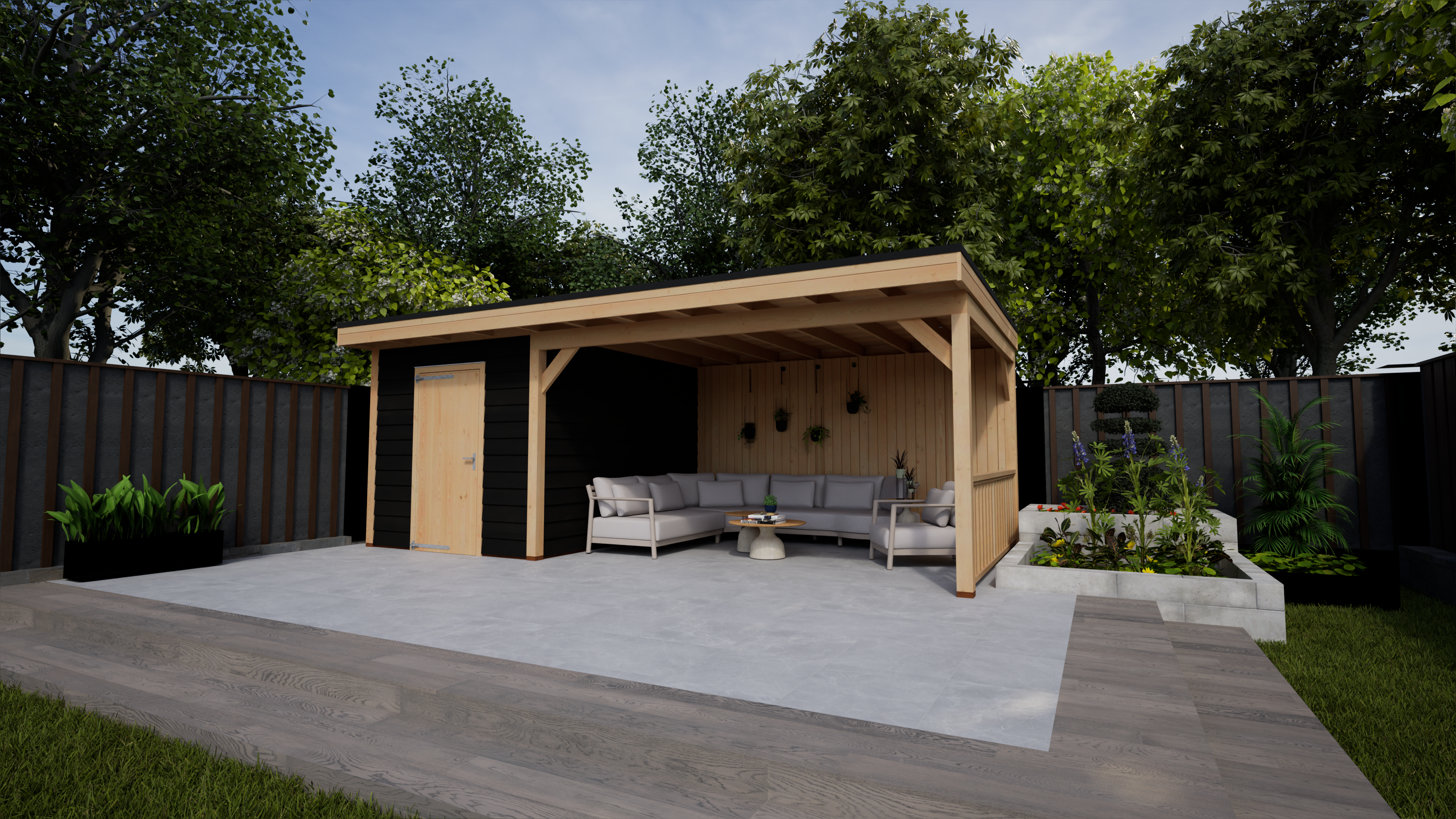 – Veranda met gesloten achterwand