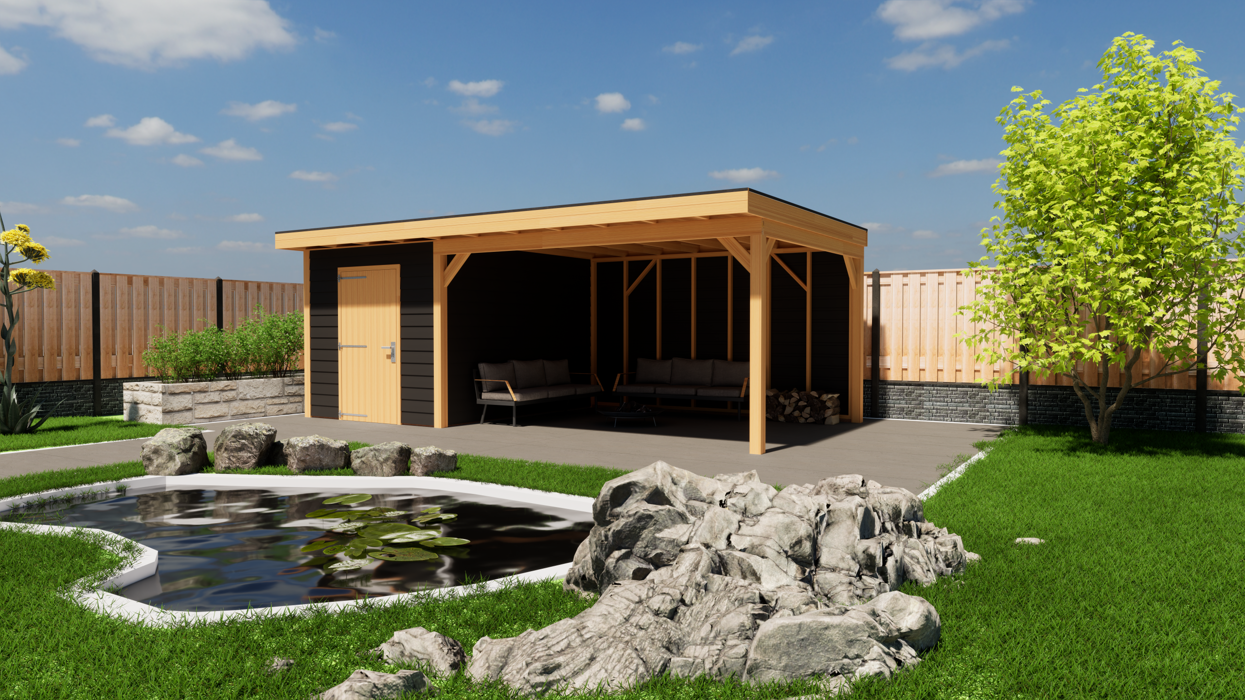 – Douglas dakbeschot 18mm en Red class wandregels (Douglas look)