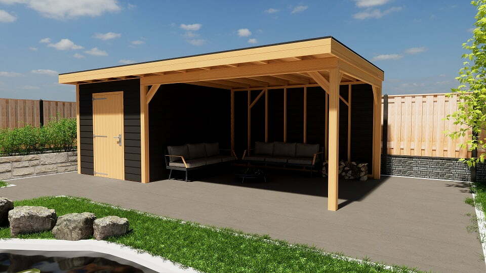 – Hardhouten funderingsrand onder de wanden en aansluitende staanders
