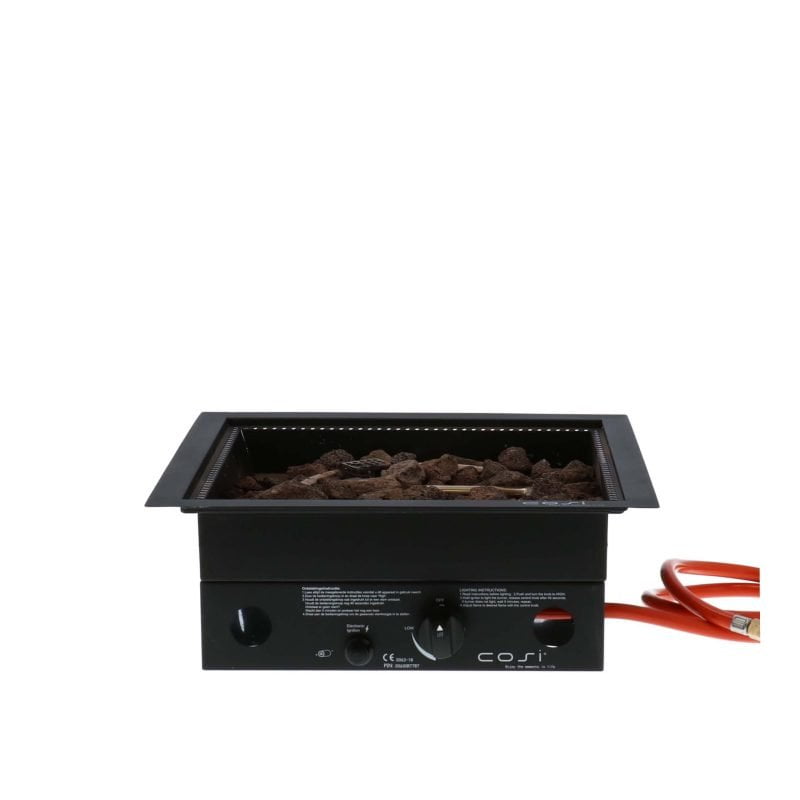 Inclusief: 30mBar regelaar met gasslang, lavastenen en afdekplaat in rvs of staal (Glasset alleen inclusief bij model  Cosiburner “BuildUp”)