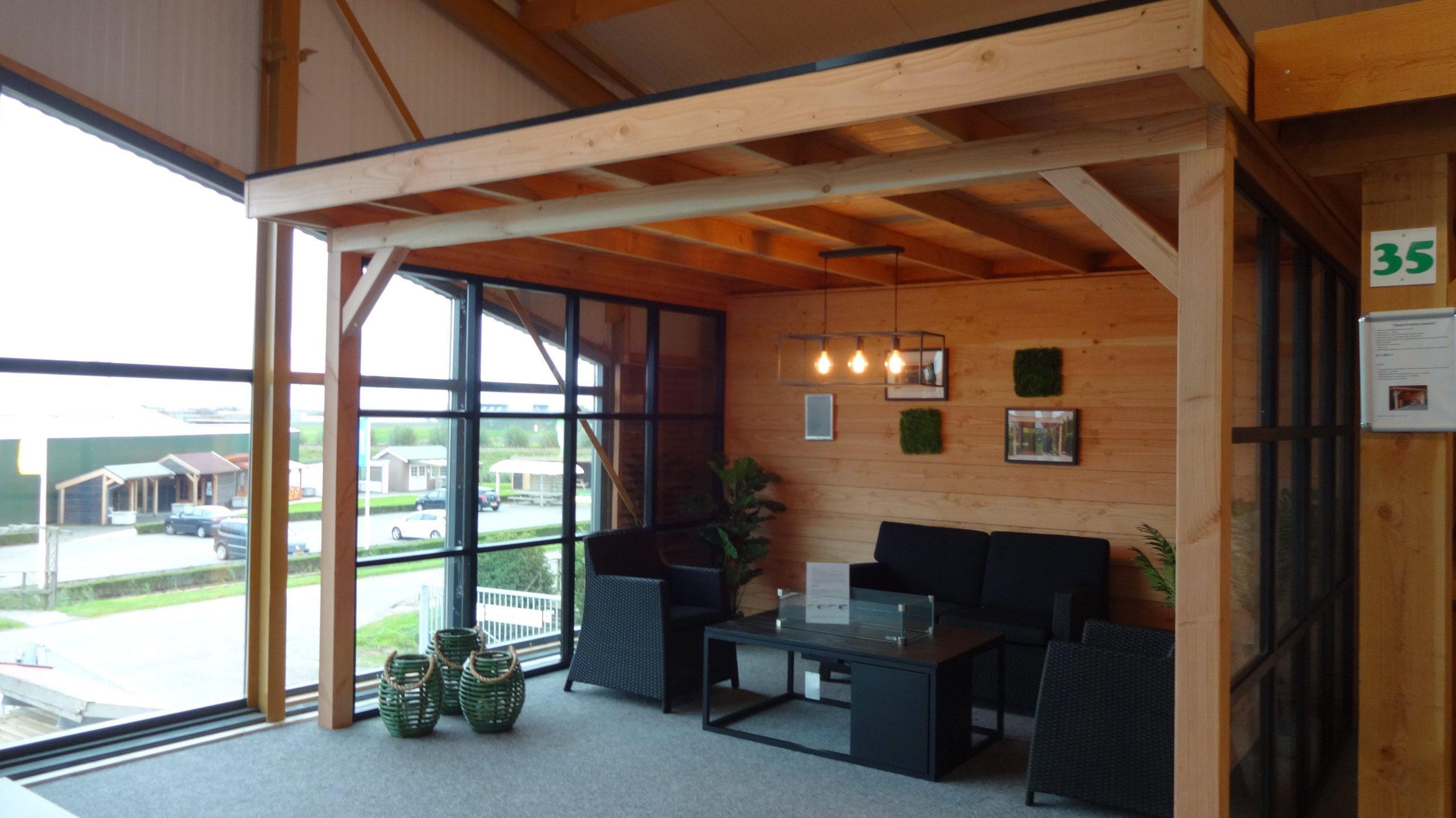 • Achterwand enkelzijdig van blank Douglas of zwart gespoten vuren Zweeds rabat (in losse materialen)