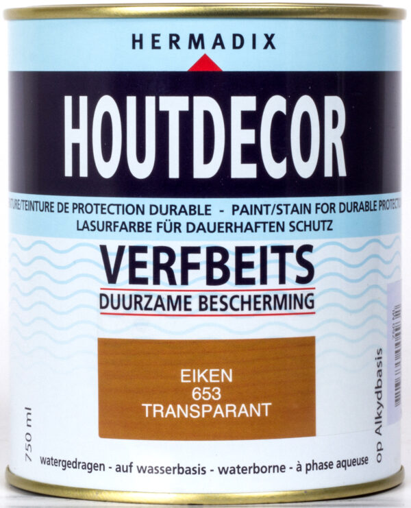 Buiten toepasbare duurzame biobased verfbeits voor schuren, schuttingen, deuren, kozijnen, geveltimmerwerk, tuinhout, tuinhuizen (bij voorkeur tuinhuizen ook aan de binnenzijde behandelen) e.d. Dekkende verfbeits c.q. transparante beits op basis van natuurlijke, hernieuwbare olie (alkydhars). Hoogwaardig verfproduct; bevat geen ander oplosmiddel dan water, is biobased en dus minder milieubelastend. Geen nare verflucht, makkelijk verwerkbaar. De transparante types hebben een U.V.-filter. Biedt een optimale bescherming. HOUTDECORBEITS is toepasbaar op o.a. vuren, grenen of reeds met alkydhars-verf geschilderd hout. Op andere houtsoorten dient de droging te worden getest. Een grondverf is niet nodig. Nieuw, niet verduurzaamd hout vooraf impregneren met Impraline Pre-Activ. Verbruik: 2,5 liter voor ca. 20-25 m2.