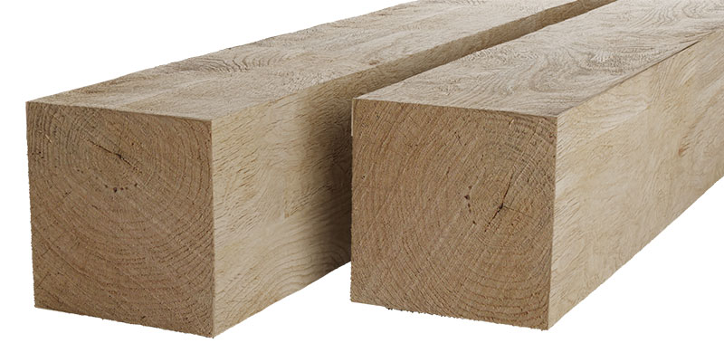Eiken palen 200x200mm fijn bezaagd, lengte 500cm