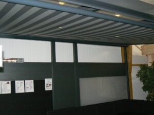 • Zijdelingse montage, daarbij valt de kast binnen de zijligger. Er ontstaat hierbij wel een kier tussen doek en zijligger