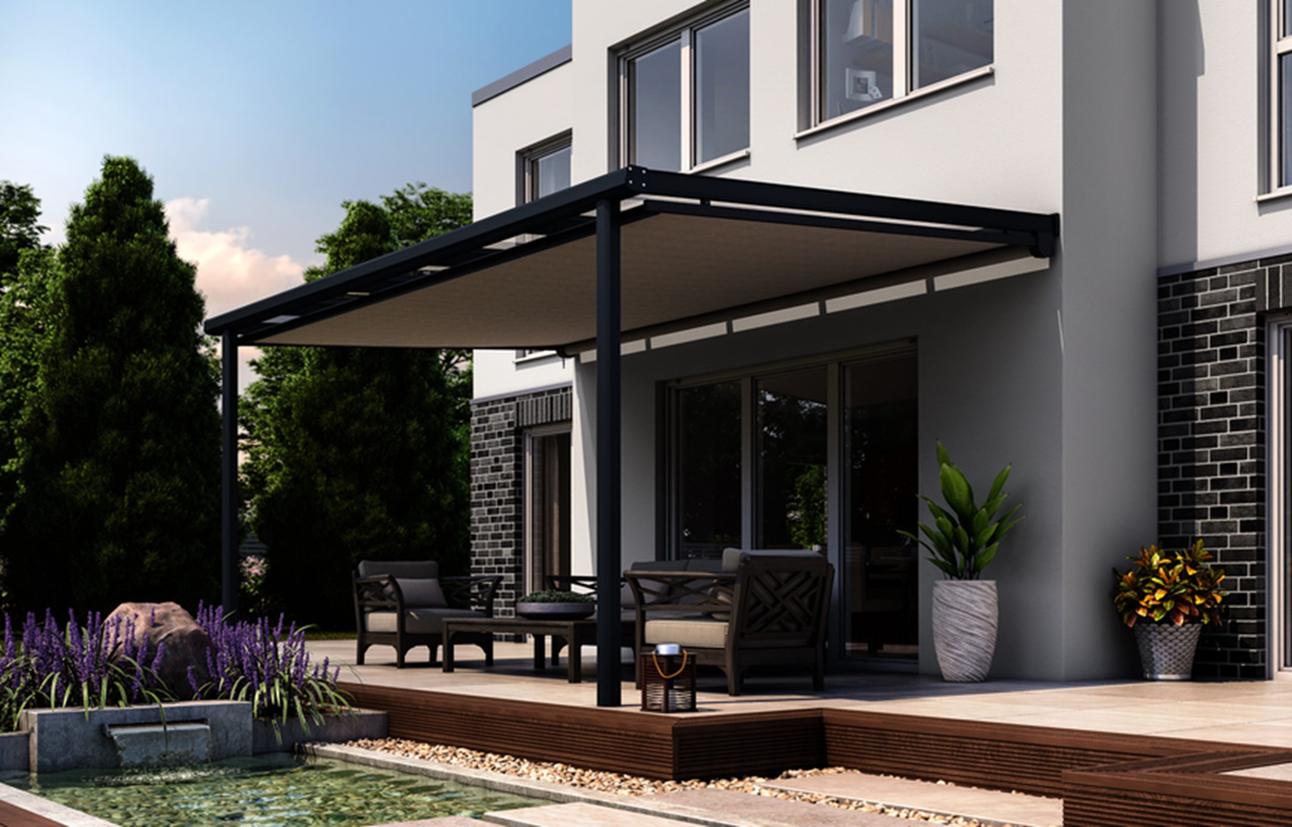De T90 zonwering is verkrijgbaar in antraciet en wit en wordt vaak geplaatst onder een Greenline veranda. Al is deze natuurlijk ook toe te passen op onze andere overkappingen. De maximaal mogelijke breedte is 5500 mm.