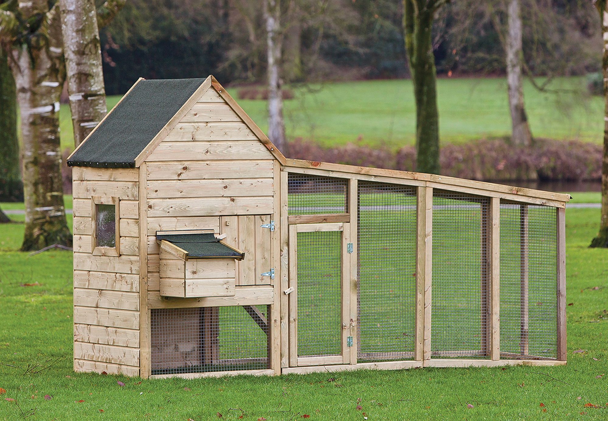 Groen geïmpregneerd vuren Afmeting: 300x100cm Nokhoogte: 170cm Dakbedekking: Dakleer Inbegrepen: Bevestigingsmaterialen en zitstok
