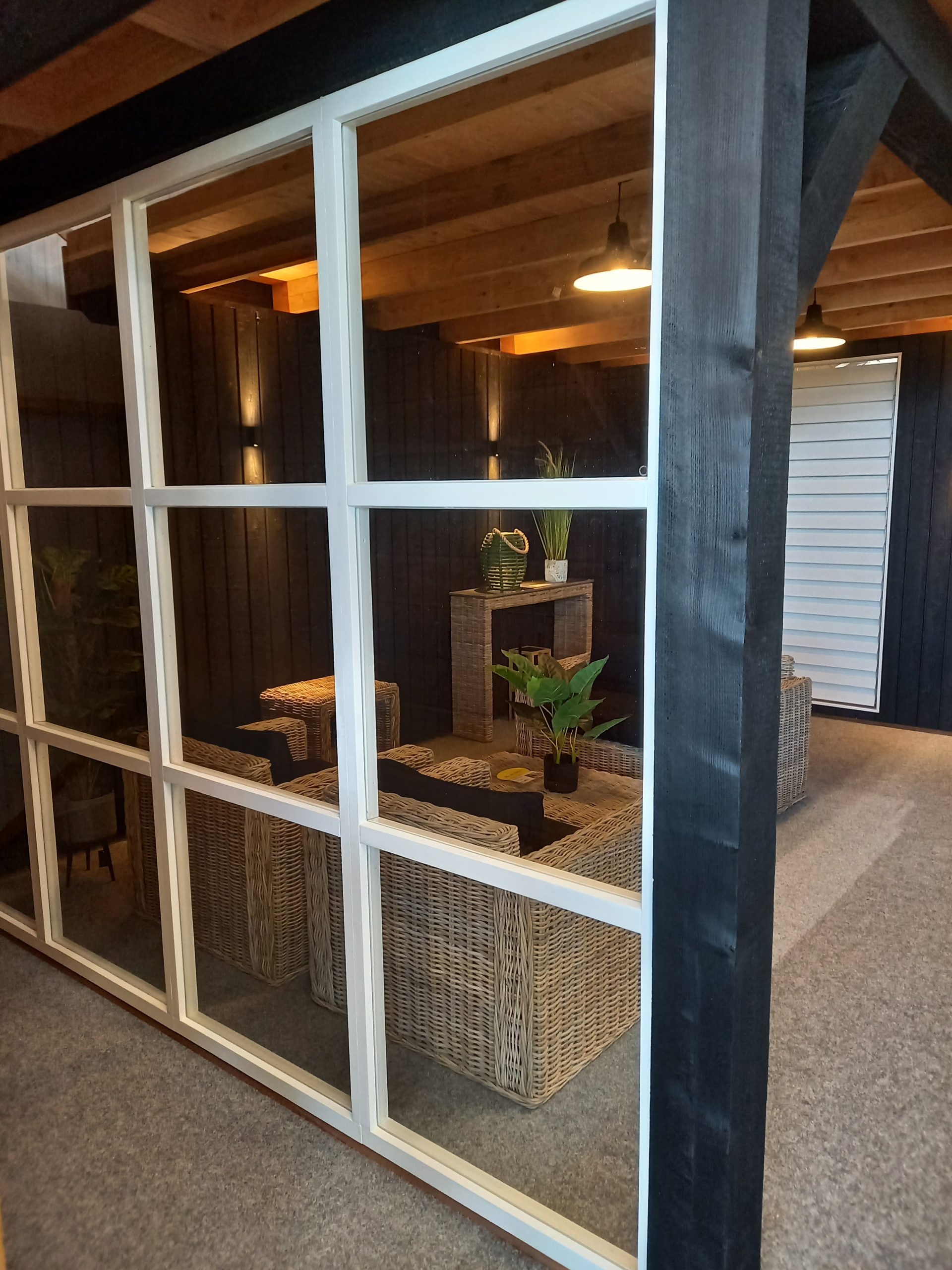 – Boeidelen 28mm blank Douglas + zwarte hoektrim
