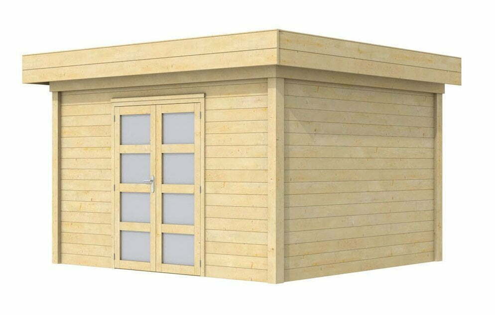 De tuinhuizen zijn uitgevoerd met een overstek van 25cm aan voor- en zijkanten. De wanden zijn vervaardigd uit blokhutprofielen van 28mm dikte.