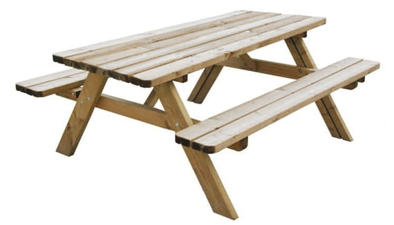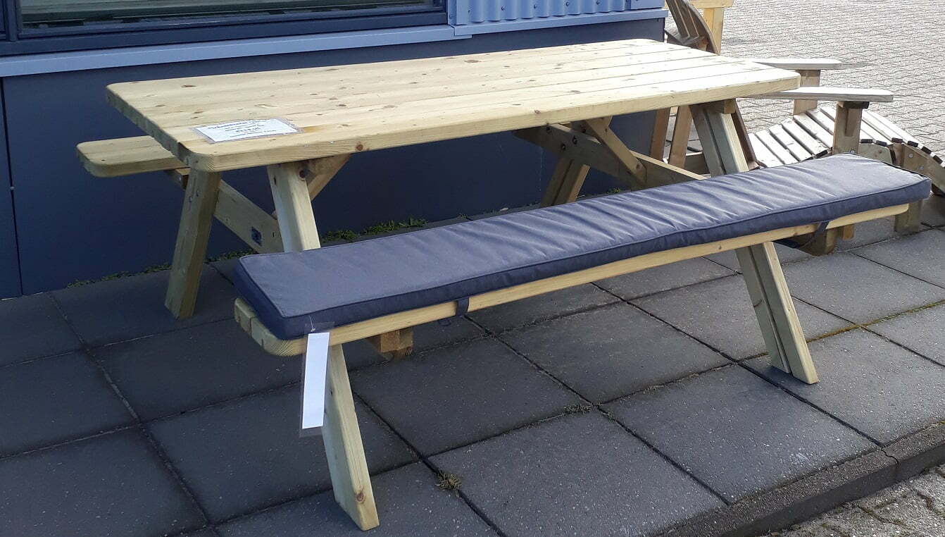 Deze super stevige picknicktafel is 180cm lang, blad is 74cm breed (totaal 151cm breed) en heeft een houtdikte van 40mm en is keteldruk geïmpregneerd.