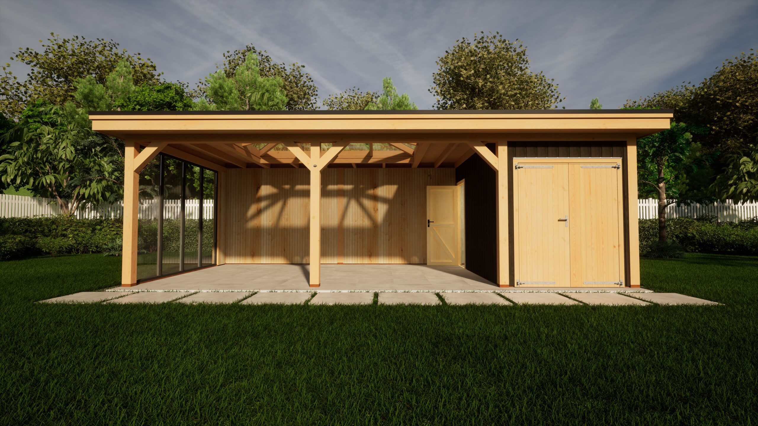 - Hardhouten funderingsrand onder de wanden en aansluitende staanders