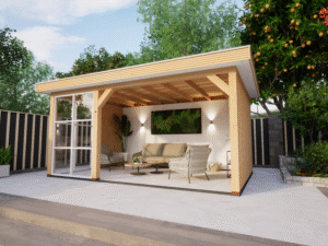 - Douglas dakbeschot 18mm en Red class wandregels (Douglas look)