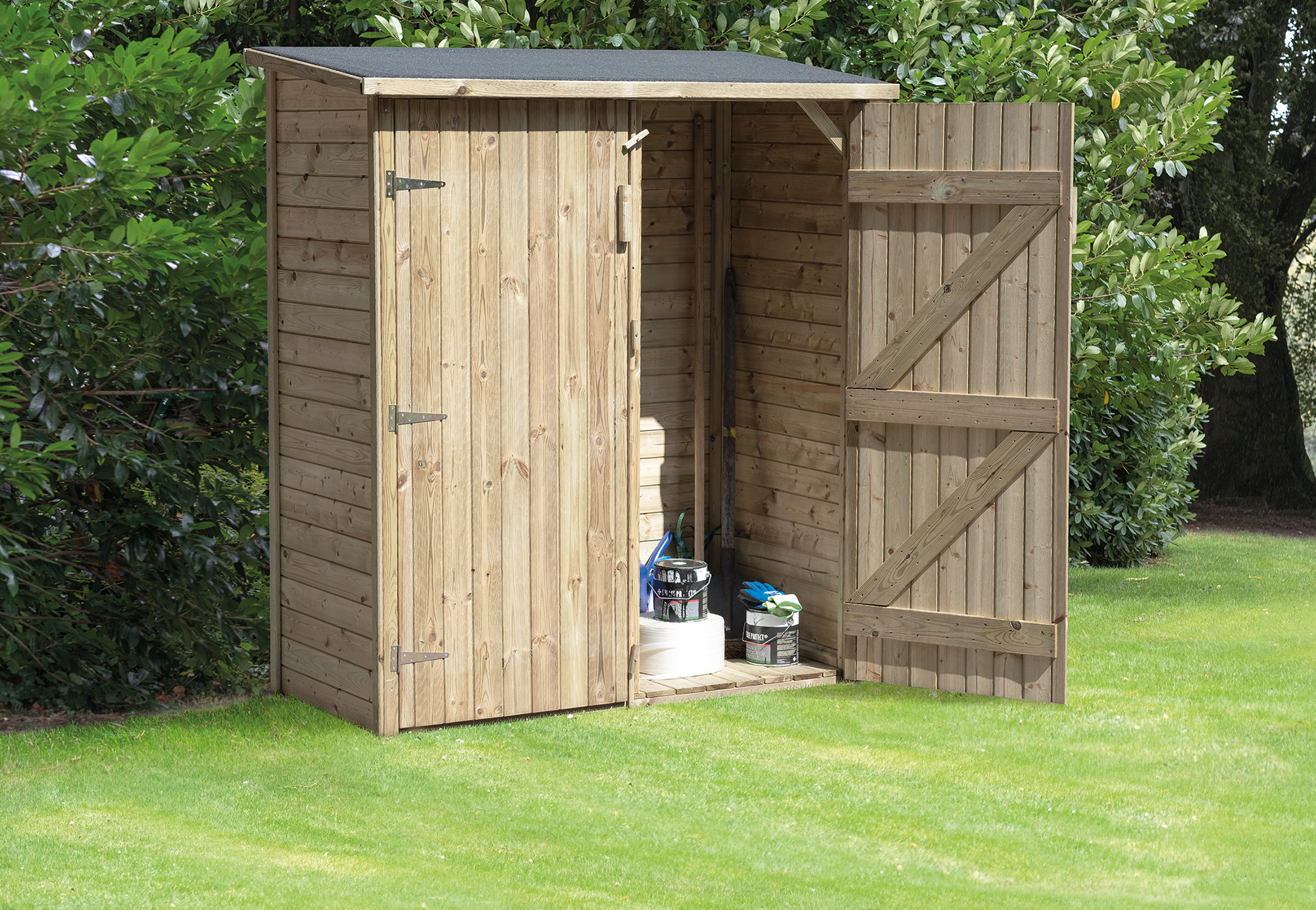 Inbegrepen: Bevestigingsmaterialen en houten vloer