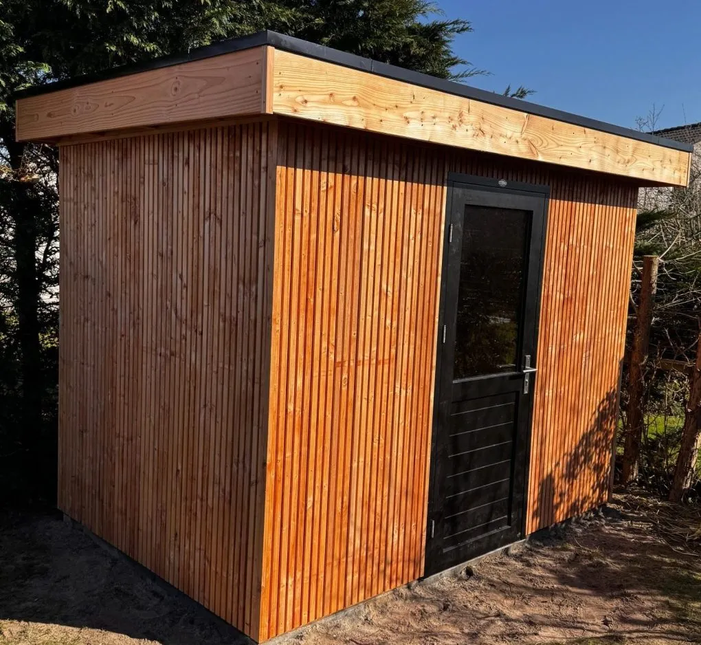 -Wanden enkelzijdig bekleed met Douglas-look rhombus profiel