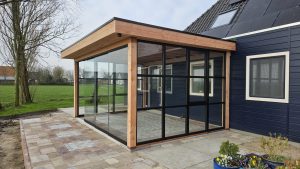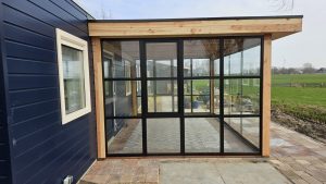 -Beide zijdes met 4 zwarte  Steellook panelen, waarvan 1 met groot draai/kiep raam