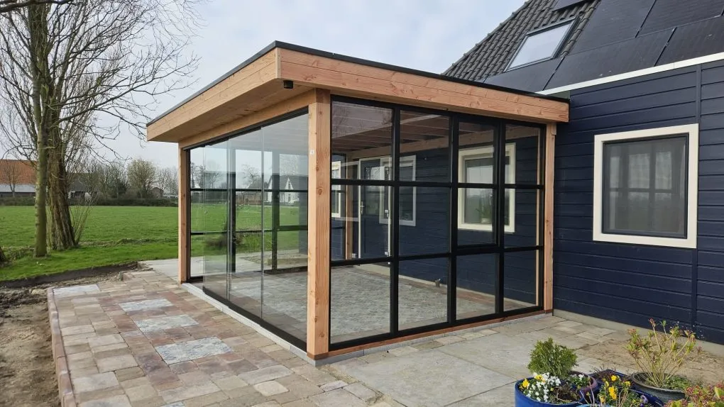 -4-Delige “Profiline” Glasschuifwand in de voorzijde