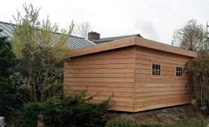 -Elementbouw, wanden enkelzijdig bekleed met Douglas blank Zweeds rabat 27x195mm,