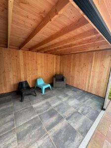 -Elementbouw, wanden aan de buitenzijdes bekleed met zwart Zweeds rabat