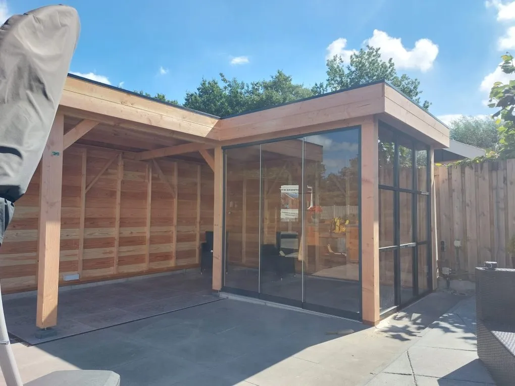 -Wanden enkelzijdig bekleed met Douglas blank Zweeds rabat 27mm, RVS genageld