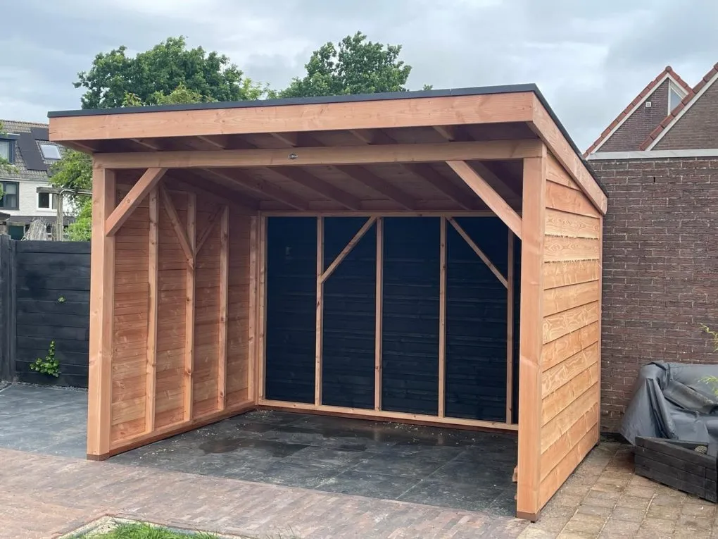 -Achterwand bekleed met zwart gespoten Zweeds rabat, zwart genageld