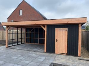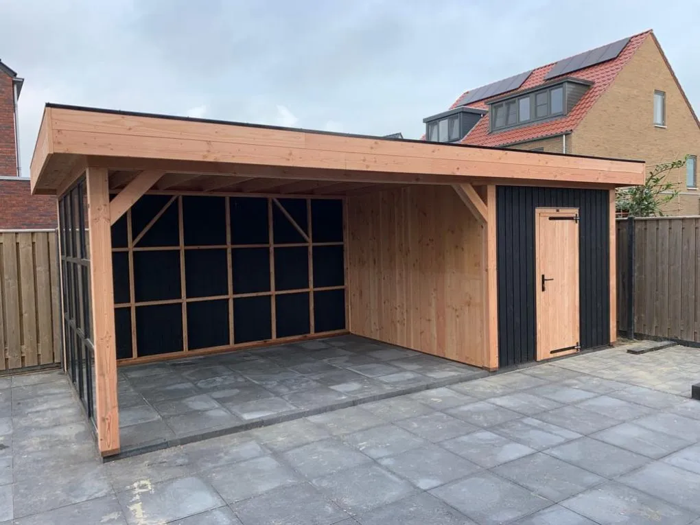 Luxe Douglas tuinhuis + overkapping “Diamant”