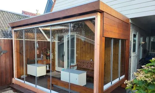 Glazen schuifwanden in bestaande overkapping